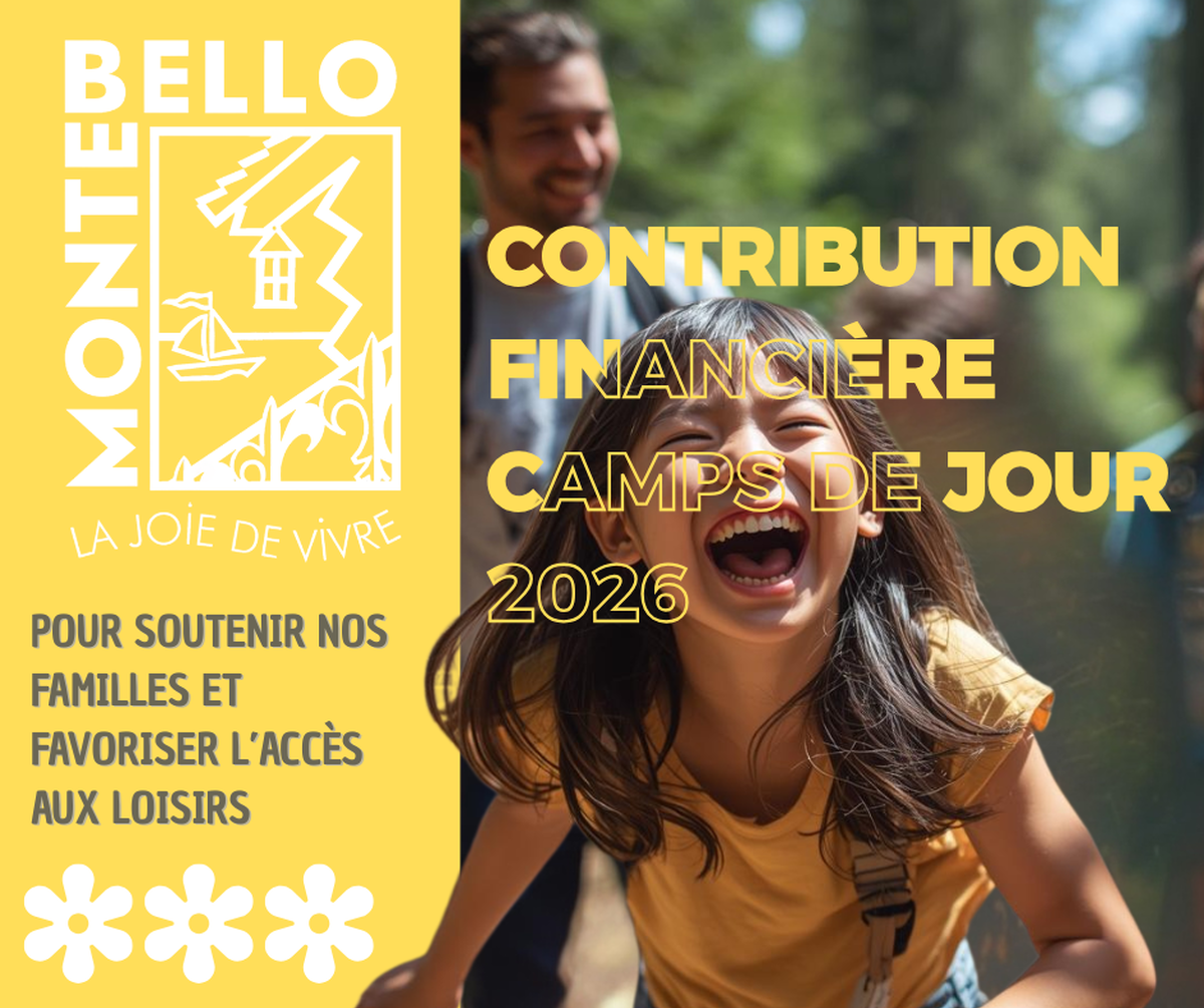Dans le cadre de sa politique familiale et conformément à la résolution 2025-12-230 adoptée par le Conseil municipal, la Municipalité de Montebello offre une contribution financière visant à faciliter l’accès des enfants aux camps de jour.
