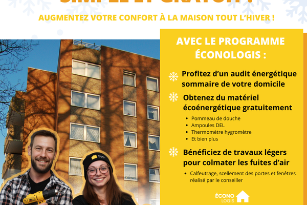 Saviez-vous que le programme Éconologis du gouvernement du Québec offre un service 100 % gratuit pour vous aider à réduire votre consommation d'eau et d'énergie à la maison ?